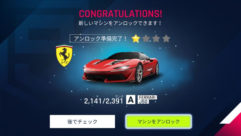 カードパックで FERRARI J50 がアンロックできました。