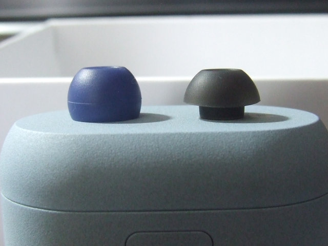 ▲イヤーピースは JVC の通常品(左)と異なるものが添付されています。